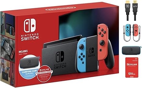 [Hubxcel Holiday Bundle] Includes Switch console, Switch base, Joy-Con (left) and Joy-Con (right), two Joy-Con shoulder strap accessories, high-speed HDMI cable, AC adapter, carrying case and 12 months of Nintendo Switch Online Membership