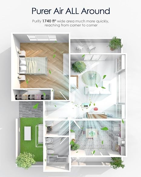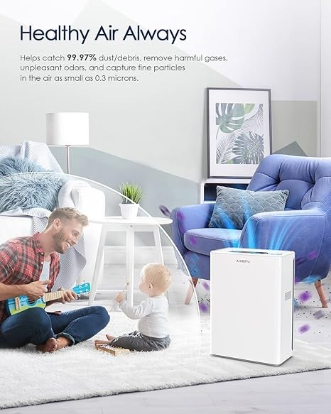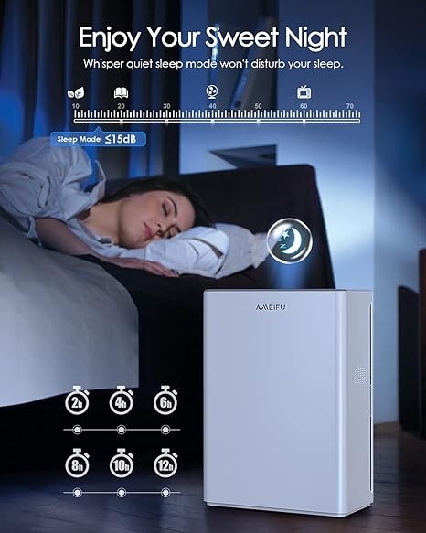 • ☘️【Fresh Your Home - High Efficiency HEPA Air Filter】This H13 HEPA filter air purifiers cleans off 99.97% of airborne contaminants, reduces and absorbs those via true HEPA filter. AMEIFU air purifiers for home suitable for large rooms up to 1740 sq ft, perfect for quickly cleaning a wide range of contaminants including pet dander, smoke, and bad smells in a certain space.