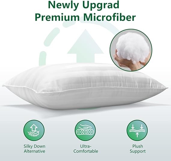 • Cloud-Like Soft - Pillow is made with ultra-plush down alternative filling, mimicking the feel of real goose down; Our pillow provides a perfect balance of comfort and support to keep your spine aligned to improve sleep quality