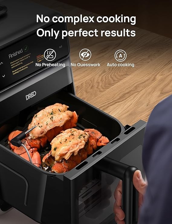 Dreo ChefMaker Combi Fryer, Cook like a pro with just the press of a button, Smart Air Fryer Cooker with Cook probe, Water Atomizer, 3 professional cooking modes, 6 QT