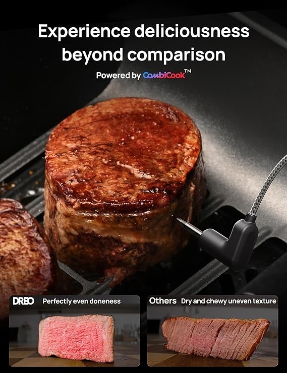 • Masterful Cooking, Deliciously Simple: The Dreo ChefMaker combines food science and chef mastery to deliver the most perfectly cooked meals. Taste perfectly cooked steaks, succulent tender salmon, and flavorful juicy chicken breasts, all with just the press of a button.