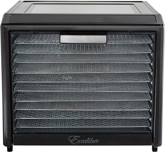 Excalibur Electric Food Dehydrator Performance Series 10-Tray with Adjustable Temperature Control Includes Stainless Steel Drying Trays Glass Door Top View Window and LED Display Progress Bar, Black