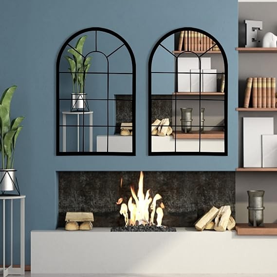 HQiJun Wall Mirror Window Decorative Mirrors Arched Farmhouse for Living Room Bedroom Entryway Bathroom Vanity (19.7” x31.5” x0.9”)