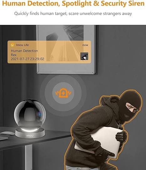 SPECIFICALLY DESIGNED FOR HOME SECURITY: When an intruder is spotted, the human detection technology quickly picks out human targets, then motion tracking focuses on the target and follows it. The built-in spotlight turns on and the siren activates, scaring away unwelcome visitors