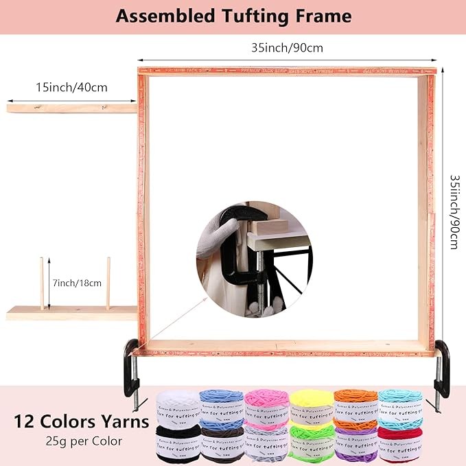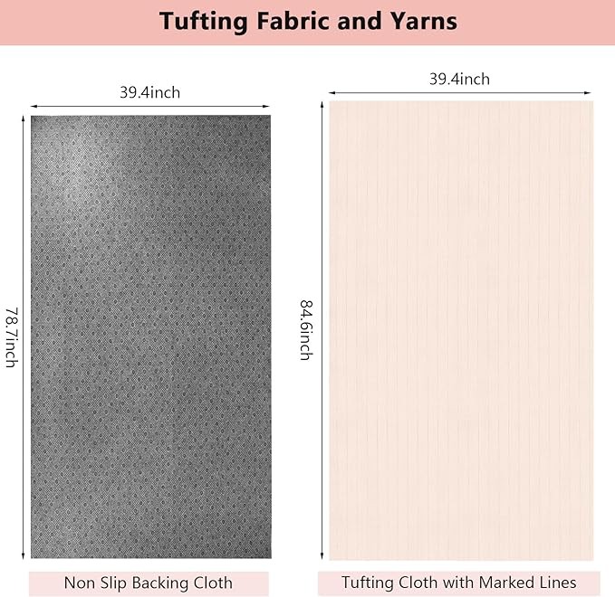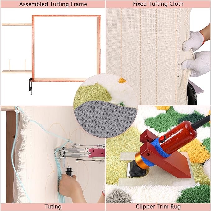 • Complete Tufting Kit: This 8-pack rug making kit includes all the essential tools you need to create beautiful and unique tufted rugs. It comes with a tufting gun, carpet trimmer, carpet shears, rug brush, tufting frame, 2pcs tufting cloth, high-quality yarn and accessories, providing everything you need in one convenient package