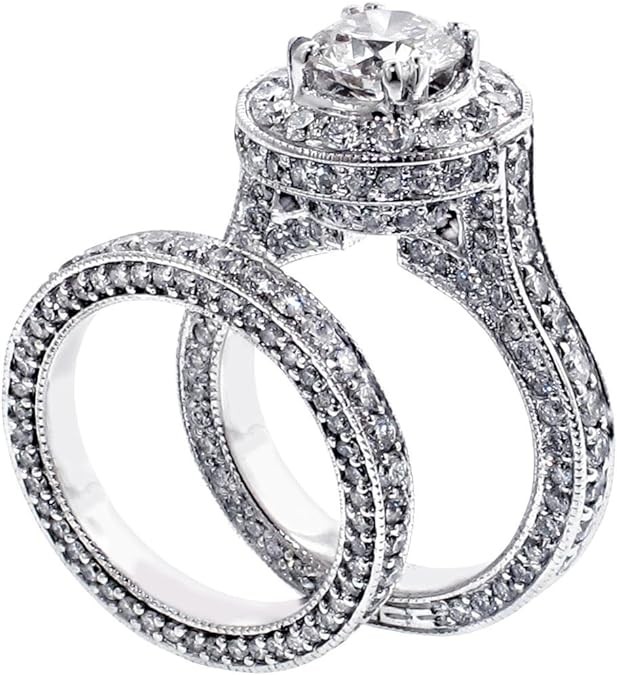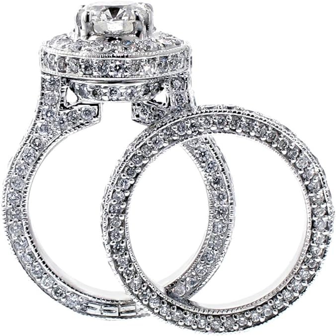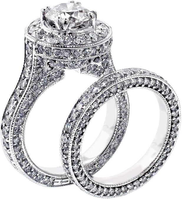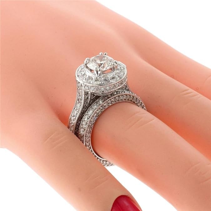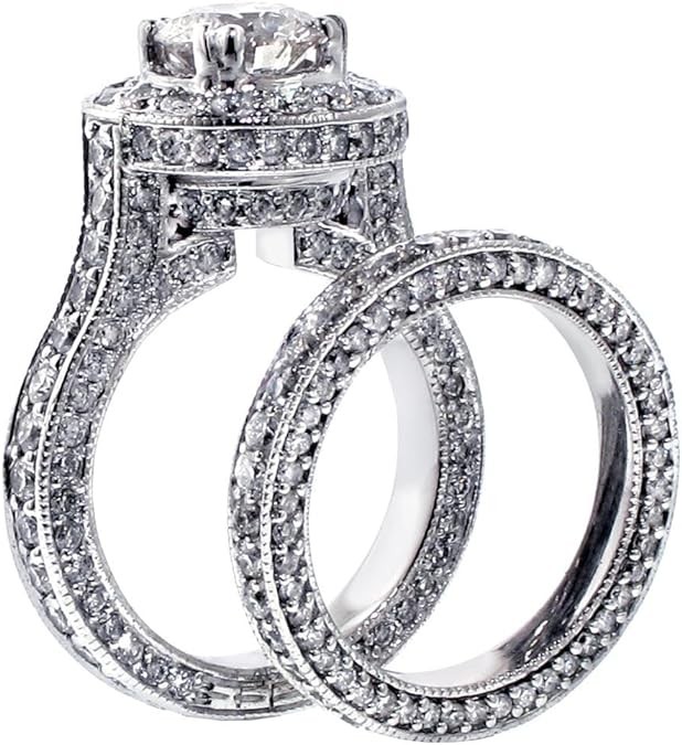 VIP Jewelry Art 5.20 CT TW GIA Certified Round Diamond Halo Engagement Bridal Set in 14k White Gold